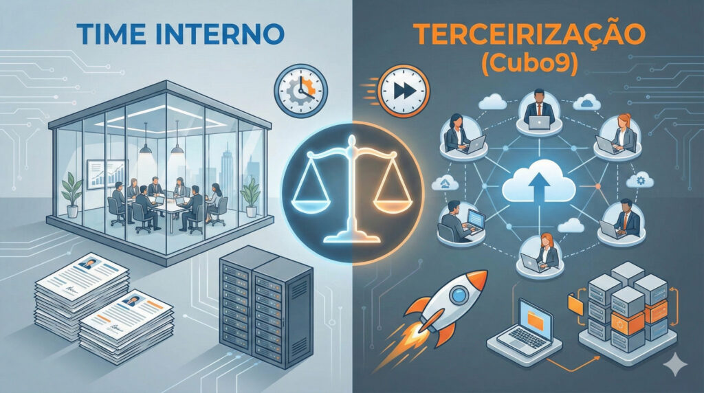 A resposta longa — e a que vai salvar seu orçamento — exige uma análise fria sobre o mercado atual. Com a escassez global de talentos tech e salários inflacionados, a velha regra de “ter tudo dentro de casa” nem sempre se sustenta. Por outro lado, entregar seu core business inteiramente a terceiros pode parecer arriscado.
